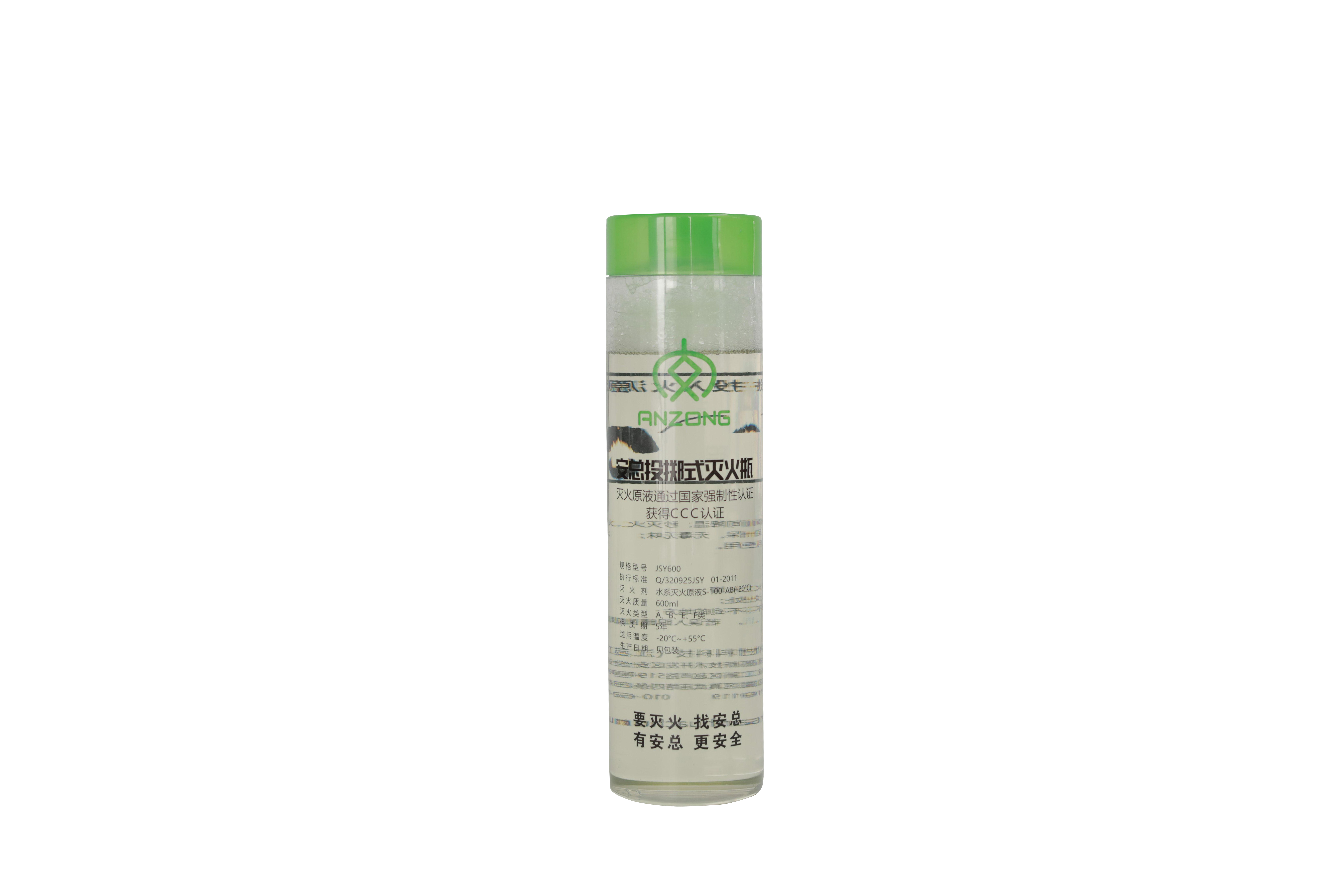 投掷式灭火瓶,瓶体触物即碎后灭火剂迅疾迸溅至燃烧物,完成对燃烧物吸热冷却、缺氧窒息、覆盖隔离、抑制阻断作用。